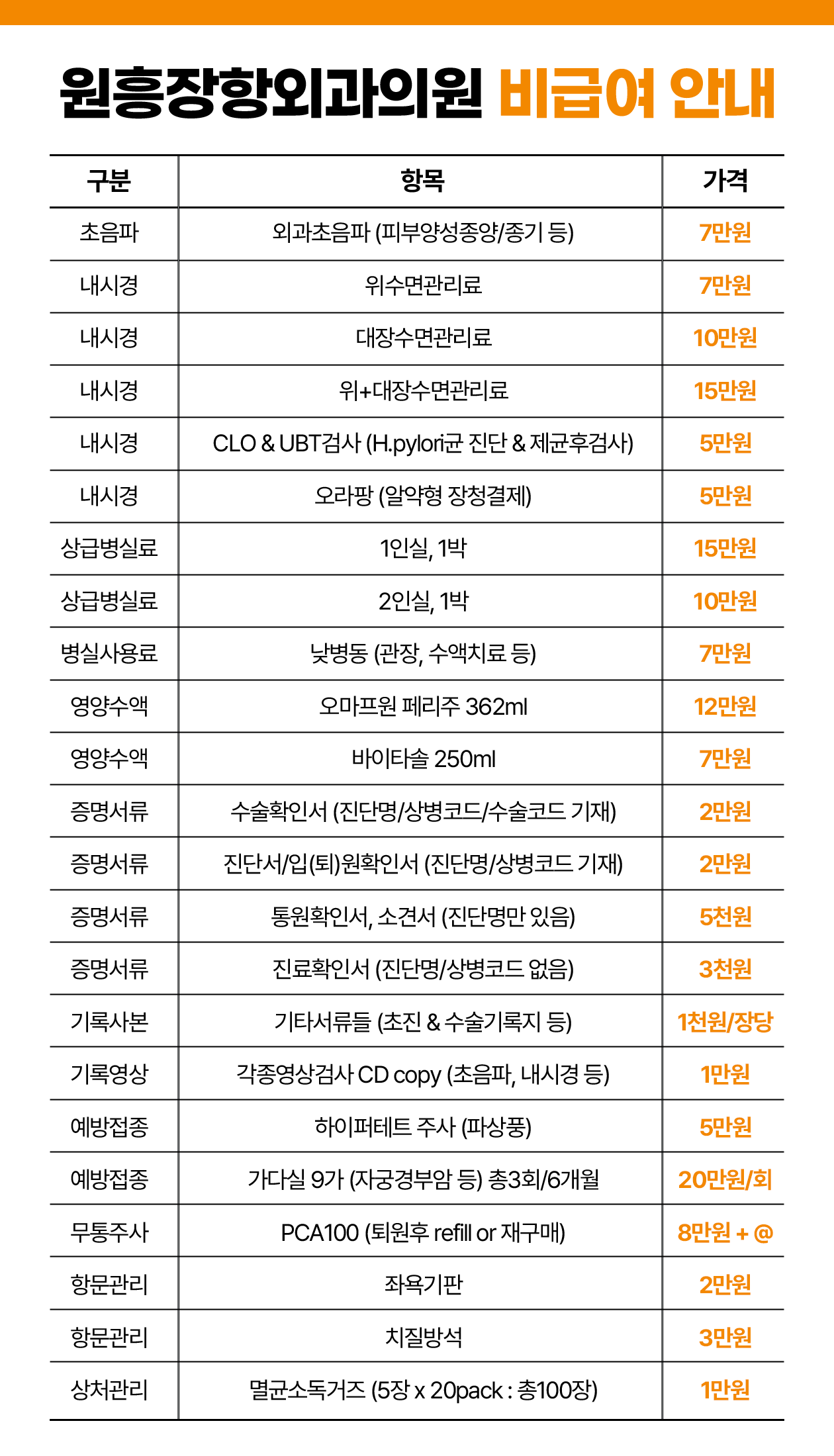 원흥장항외과 비급여항목과 금액을 공개합니다.